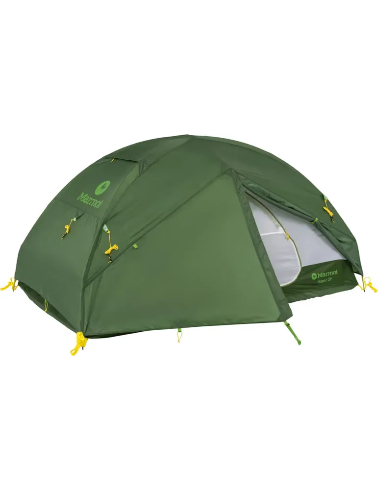 Marmot Vapor 2P är byggt för att klara kalla temperaturer, tufft väder och alla utmaningar på leden. Den ventilerade ripstop-kanopyn i full tygkonstruktion och halv-mesh D-dörrarna skyddar mot kyla, medan det sömtätade golvet och regnduken, med extra fästpunkter, står emot starka vindar och regnstormar. Topventilationen i taket och regnduken gör att tältet andas bra, vilket hjälper till att förebygga kondens och gör det användbart även under varmare månader.