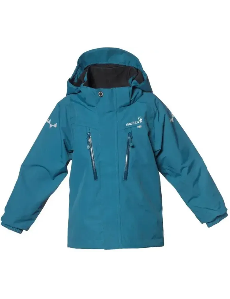 Jackan är helt vattentät och har god andningsförmåga. Jackans material möjliggör att överskottsvärme ventileras ut ur plagget vilket ser till att ditt barn alltid kommer att vara torrt och lagom varmt.