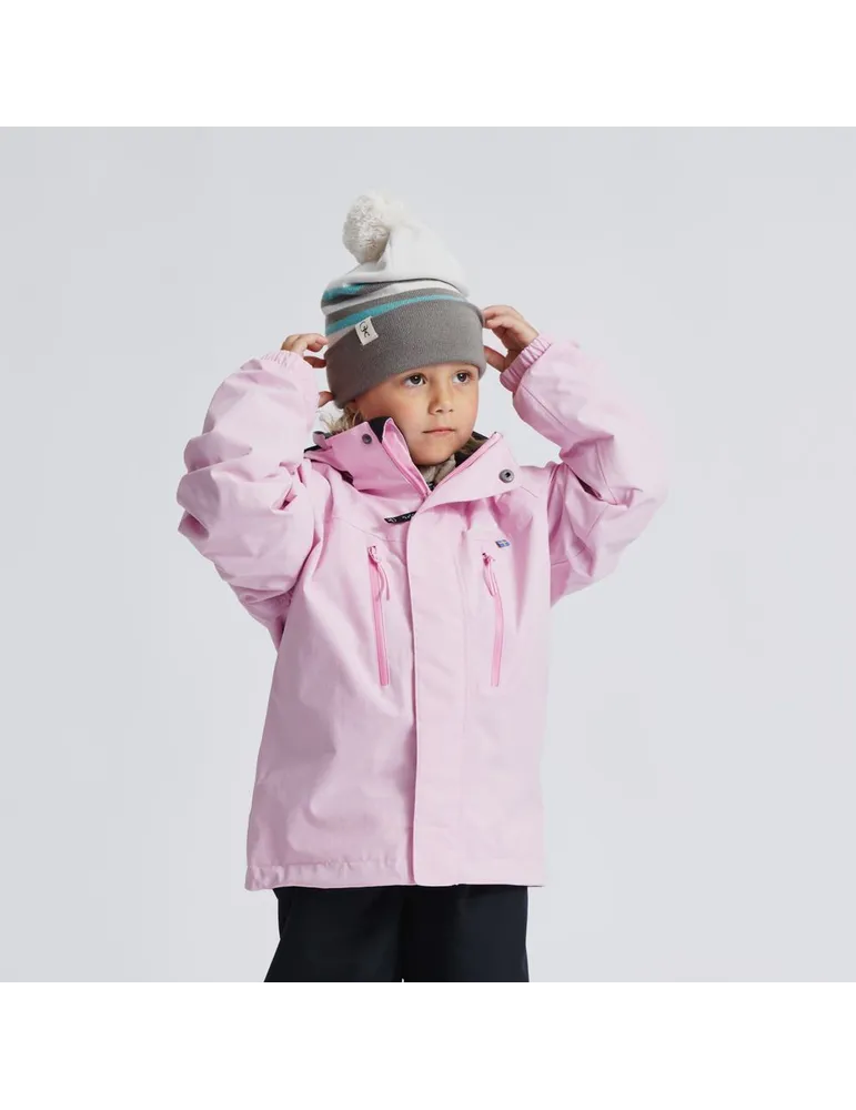 Jackan är helt vattentät och har god andningsförmåga. Jackans material möjliggör att överskottsvärme ventileras ut ur plagget vilket ser till att ditt barn alltid kommer att vara torrt och lagom varmt.