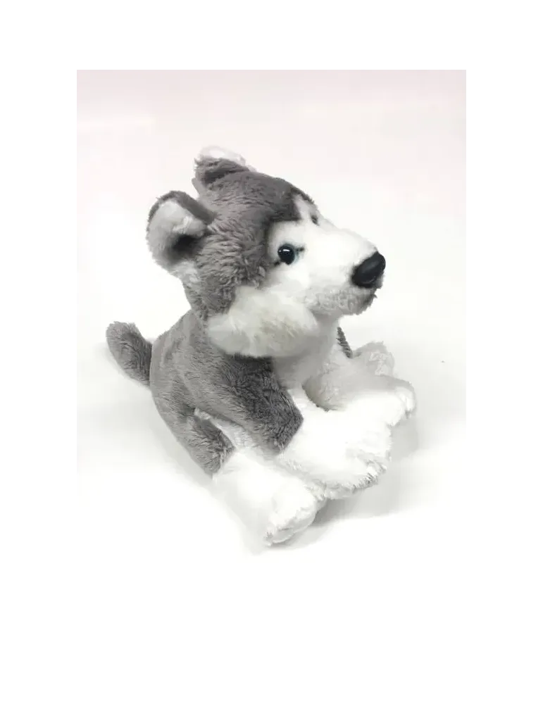 Nordic Souvenirs Liggande Husky är framtagen i ett mjukt och mysigt material med skinnimitation på nosen samt ett par hårda ögon med realistisk pupill och iris för att ge ett mer verklighetstroget utseende.