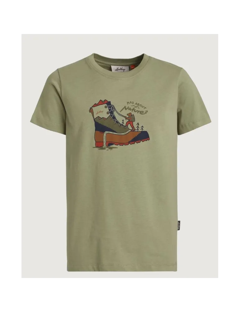 Fulu Climbing T-shirt Junior har ett lekfullt grafiskt tryck, speciellt designad för Lundhags. Det ekologiska tyget är mjukt och skönt och passar perfekt för vardagsäventyr.