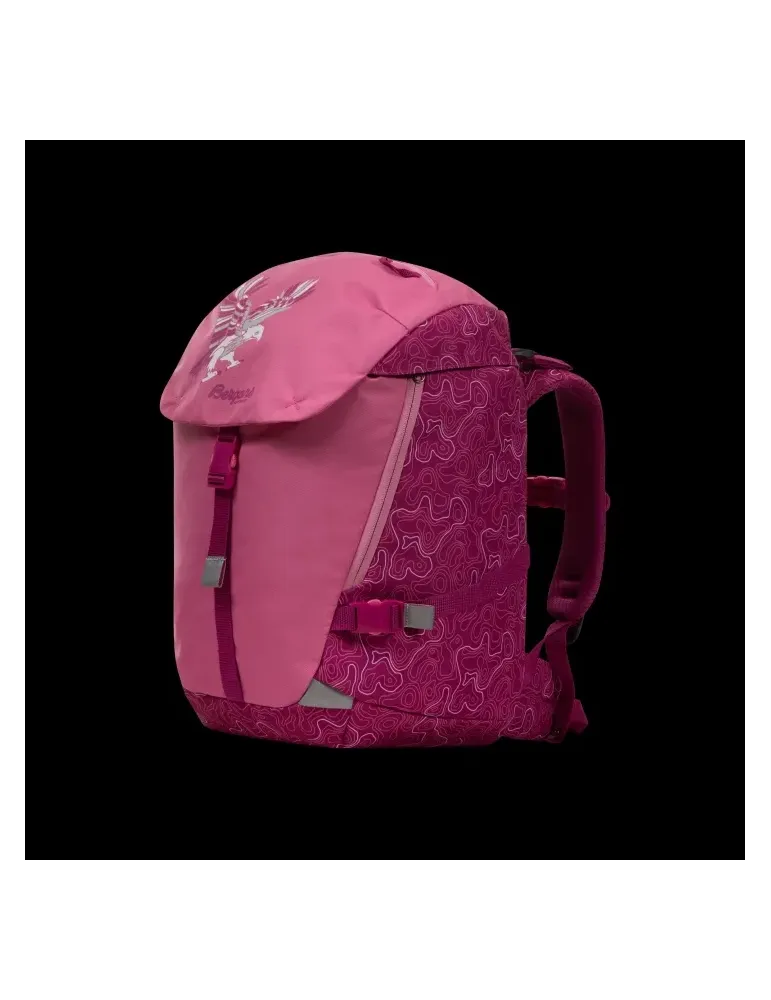 Därför är skolryggsäcken Aksla 24 Lid tillverkad i PFAS-free och 100 % återvunnen polyester från plastflaskor och fint dekorerad med mönster och figurer inspirerade av naturen. Den här ryggsäcken är speciellt framtagen för de yngsta skolbarnen och är utrustad med en mjuk men förstärkt ryggpanel som ger optimalt stöd.