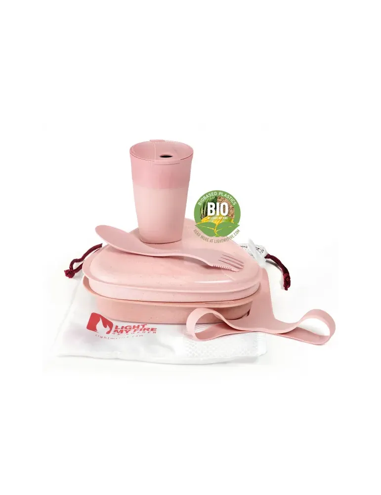 Allt du behöver för att förbereda och äta en måltid utomhus. Messkit BIO är designad speciellt för Light My Fire av den skandinaviska designern Joachim Nordwall och är ett praktiskt allt-i-ett måltidssats. Satsen innehåller 1 lock som fungerar som en tallrik (500 ml), 1 djupbotten skål som också fungerar som en tallrik (900 ml), 1 Pack-up-Cup (260 ml) och 1 Light My Fire Spork Original. Den inkluderar också en rem för att hålla satsen ihop. Pack-up-cupen expanderar när du är redo för en varm eller kall dryck och kollapsar när måltiden är över och när middagen är klar, använd tallriken och skålen för att äta en läcker måltid med Spork-originalet som är en kombisked- gaffel-kniv. Det fina med detta kit är att det hela häckar inuti sig själv för ett kompakt och mångsidigt produkt. Slutligen är alla komponenter tåliga för diskmaskin och mikrovågsugn (utom Pack-up-Cup) och är tillverkade av biobaserad plast som är 100% BPA-fri. Detta gör satsen mångsidig att använda som lunchlåda för skolan eller arbetet.