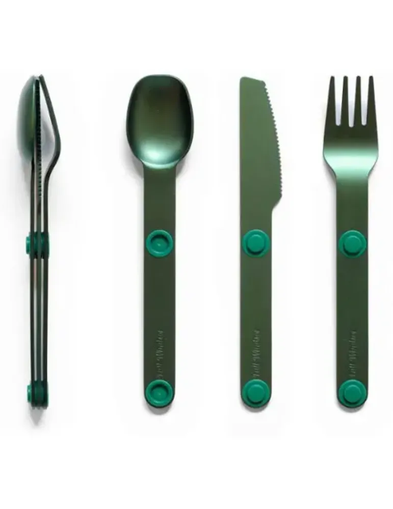 Bestickset i stark 7075 aluminiumlegering som hålls ihop med inbyggda magneter. Lätta och starka bestick som du kan använda gång på gång.