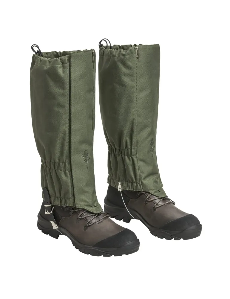 Praktiska damasker för användning året runt för att undvika t.ex. smuts, stenar eller snö i skon. Öppning framtill med dragkedja samt kardborreband. Försedd med rostfri metallkrok som fästs i skosnöret samt stålvajer med spännbar rem som fästs runt foten. Upptill försedd med spännbar stropp för att sluta tätt. Tillverkade i kraftig oxford för att göra damaskerna slitstarka. 100% polyester.