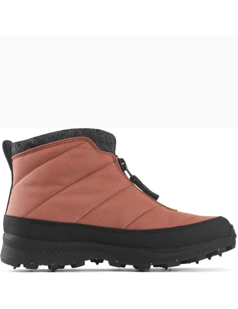 I vår modell Sala möts komfort och funktionalitet för vinterdagar. Med en dragkedja på framsidan är kängan enkel att ta på och av. Den quiltade stoppningen och fodret av återvunnen ull och polyester håller fötterna varma, medan ett vattenresistent RipStop-membran skyddar mot väta. För extra skydd mot slask löper en mudguard runt skon. Sala är utrustad med en BUGrip®-yttersula, som har 16 dynamiska dubbar av karbidstål, vilket ger ett oslagbart grepp på is och snö.