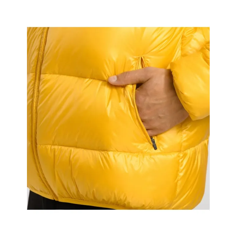 Eskimo-jackans förmåga att komprimeras gör att den enkelt får plats i en av sina egna fickor, utmärkt för förvaring i ryggsäcken. De elastiska muddarna och midjan bevarar värmen och håller kylan ute. Med en fyllning av 750 fillpower gåsdun med RDS-certifiering kan du lita på att jackan levererar bra med isolering och värme. Eskimo är det praktiska och snygga valet för den som behöver ett säkert värmande lager under de kallare månaderna.