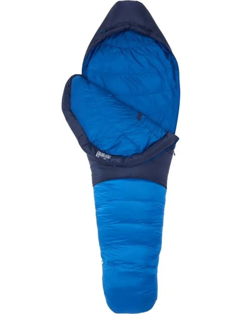 Marmot Helium Long är framtagen för långa turer när låg vikt och hög värme står högt i kurs. Den anatomiska mumieformen med Nautilus-huva omsluter skönt och de dunkanalernas konstruktion motverkar köldbryggor.