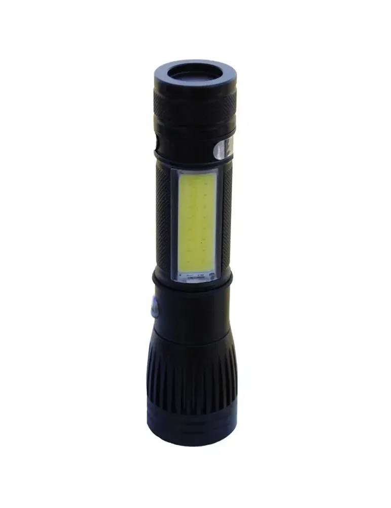 Denna ficklampa är utrustade med en kraftfull T6 och en Cob arbetsbelysning i handtaget. Ficklampan är zoombar och avger ett kraftigt ljus på 450 lumen.