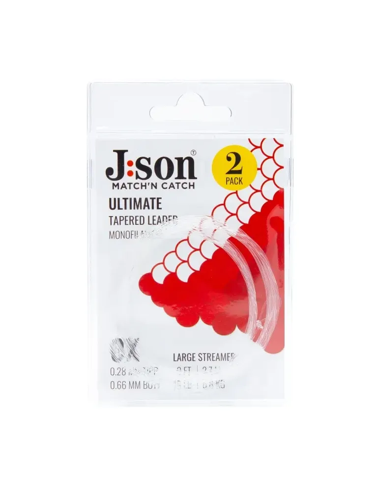 Json Ultimate Leader är framtagen främst för streamer och nymffiske med en kraftiga buttsektion för att klara av att vända ut lite större flugor. Tafsen har maximal styrka, knutstyrka och nötningstålighet för att klara av dom stora fiskarna. Dessutom har den 30% töjning vilket ger viss dämpning när du drillar stor fisk.