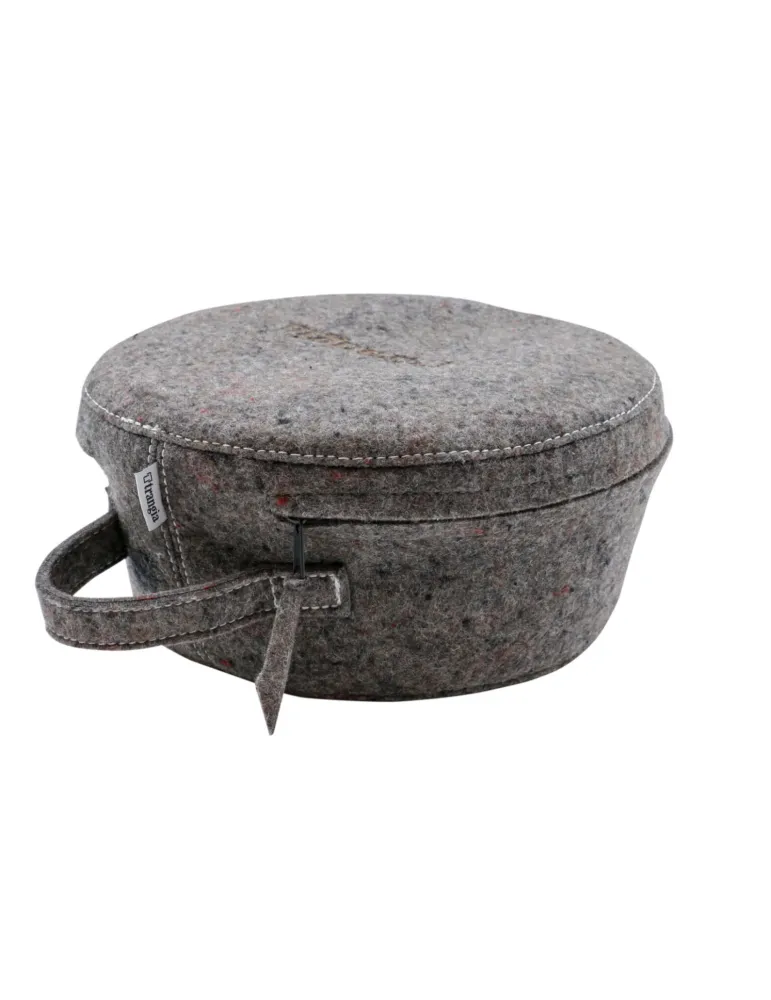 Våra ullprodukter är resultatet av ett lokalt samarbete med syfte att förlänga livslängden för Trangiaprodukter med hjälp av hållbara och slitstarka material som skyddar metallytorna från repor. Materialet är tillverkat av återvunnen ull från Woolpowers produktion och sys av en lokal tillverkare. Färgen kan komma att variera beroende på färgcykeln i Woolpowers fabrik, vilket gör ditt fodral unikt!