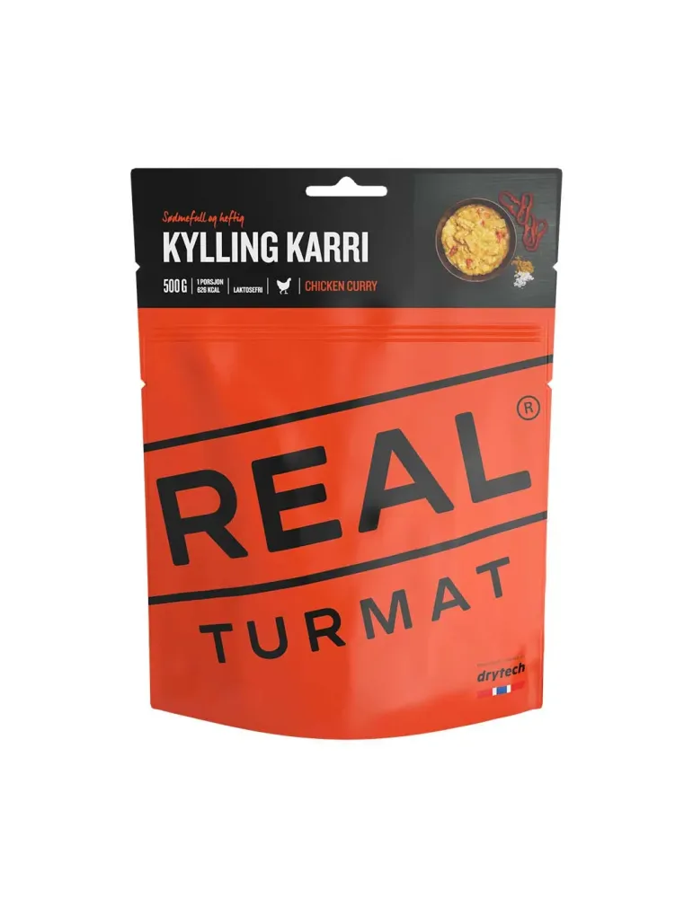 Kyckling Curry med ris från Real Turmat ger dig en smakrik och mättande måltid oavsett om du är ute på vandring eller behöver något enkelt att laga hemma. Efter en lång dag i naturen behöver kroppen påfyllning av energi, och denna färdiga måltid ger dig precis vad du behöver för att fortsätta ditt äventyr. Den smidiga förpackningen tar minimalt med plats i ryggsäcken och tillagningen är enkel - klipp upp påsen, tillsätt varmt vatten, rör om och vänta. Efter 8 minuter har du en varm, välsmakande måltid som ger dig ny energi.