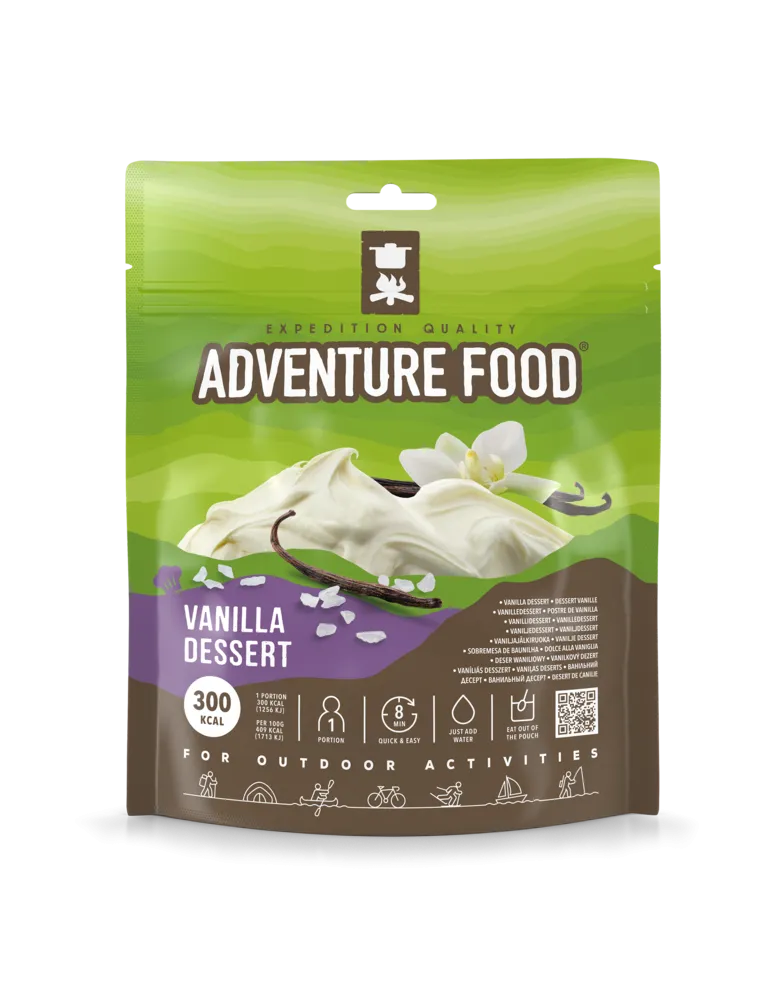 Avsluta din dag i naturen med en smakrik vaniljdessert från Adventure Food. Efter timmars vandring eller utomhusaktiviteter förtjänar du en liten belöning, och denna dessert ger dig precis den söta avslutningen du längtar efter. Den smakrika vaniljdesserten är speciellt utvecklad för friluftsliv och är därför både lätt att bära med sig och enkel att tillaga.