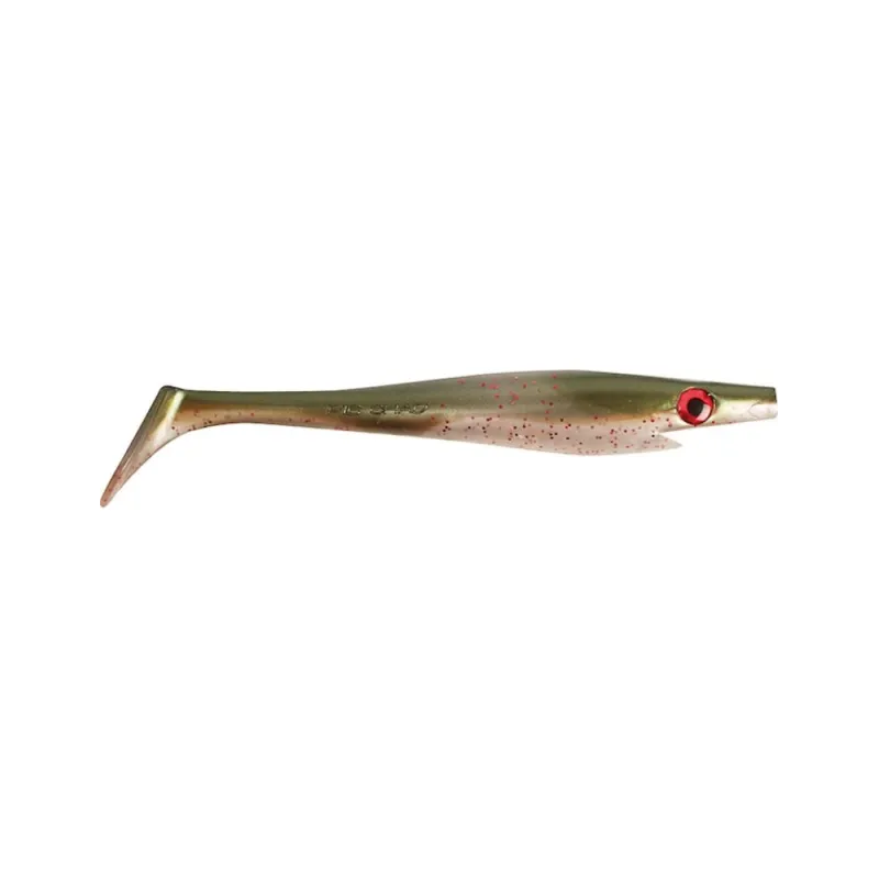 Pig Shad Jr är 20 cm lång och väger 50g. Pig Shad Jr har en förförisk vaggande gång samtidigt som den simmar med huvudet fram och tillbaka. Stjärten paddlar och vrider i ett lågfrekvent tempo. En perfekt imitation av en skadad betesfisk som långsamt lunkar fram med dess sista krafter! Pig Shad har en unik profil som liknar en välmatad betesfisk.