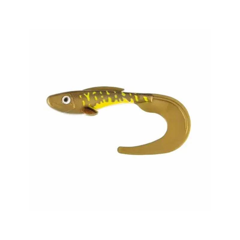 Abu Garcia Beast Curl Tail har en klassisk shad-profil men är även utrustad med en stor curly tail som ger en attraherande simrörelse och lockande vibration i vattnet. Kan tacklas med ett tungt jigghuvud/skruvskalle för att komma ner till djupet eller med shallow stinger-rigg för att få en mer grundgående presentation. Förutom hög gummikvalitét har även betet fått handmålade detaljer.