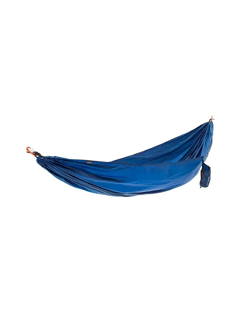 Travel Hammock Single är en rymlig resehängmatta för en person gjord av mjuk och stark 70 Denier Diamond Ripstop Nylon med riktigt starka fyrnålsstygn. Kommer med en packpåse samt två stycken 12KN-karbiner i aluminium.