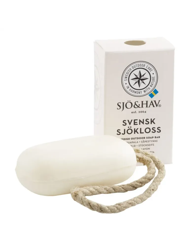 En gedigen klassisk fast saltvattentvål om 200 gram med en bas avkokos och raps, naturliga och enkla råvaror av hög kvalitet som återfuktar huden. Ger ett krämigt lödder i både salt- och sötvatten och lätt att skölja av. Fungerar även fint som raklödder. Tvålen är biologiskt nedbrytbar, vegansk och fri från konserveringsmedel och palmolja. Tvålen är anpassad för all typ av utomhusbruk. I båten, bastun eller sommarstugans utedusch. Ska du ut på vandring och minimera vikt? Hyvla av tvålspån och ta med i praktisk förvaring. Med repet av naturhampa säkrar du tvålen runt din handled och hänger upp att torka efter användning.