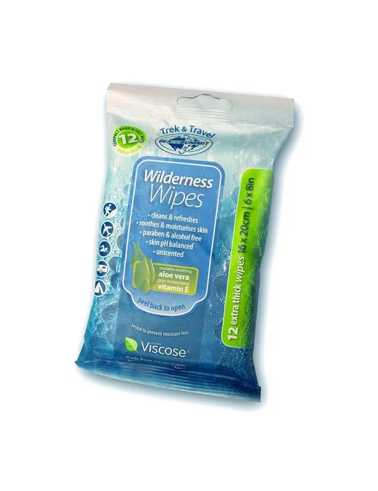 Sea to Summit Wilderness Wipes är framtagna för att vara snälla mot huden och miljön och innehåller vårdande Aloe Vera och Vitamin E.