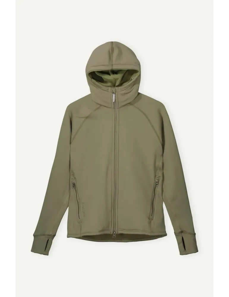 Tröjan är gjord i Polartec Power Stretch Pro, det bästa fleecetyget av sitt slag vi stött på. Det är mjukt, bekvämt och näst intill oförstörbart. Den höga kragen och åtsittande huvan sitter skönt runt nacken och huvudet och de förlängda ärmarna med tumhål håller dina händer varma i kalla grader.