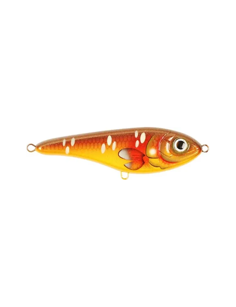 Buster Jerk Shallow Runner är flytande och jerkas i normaltempo ned till cirka 1 meter med en förföriskt slängande gång och en grym belly flash. Du kan även jerka den med höjd spötopp och få den att gå precis under ytan.