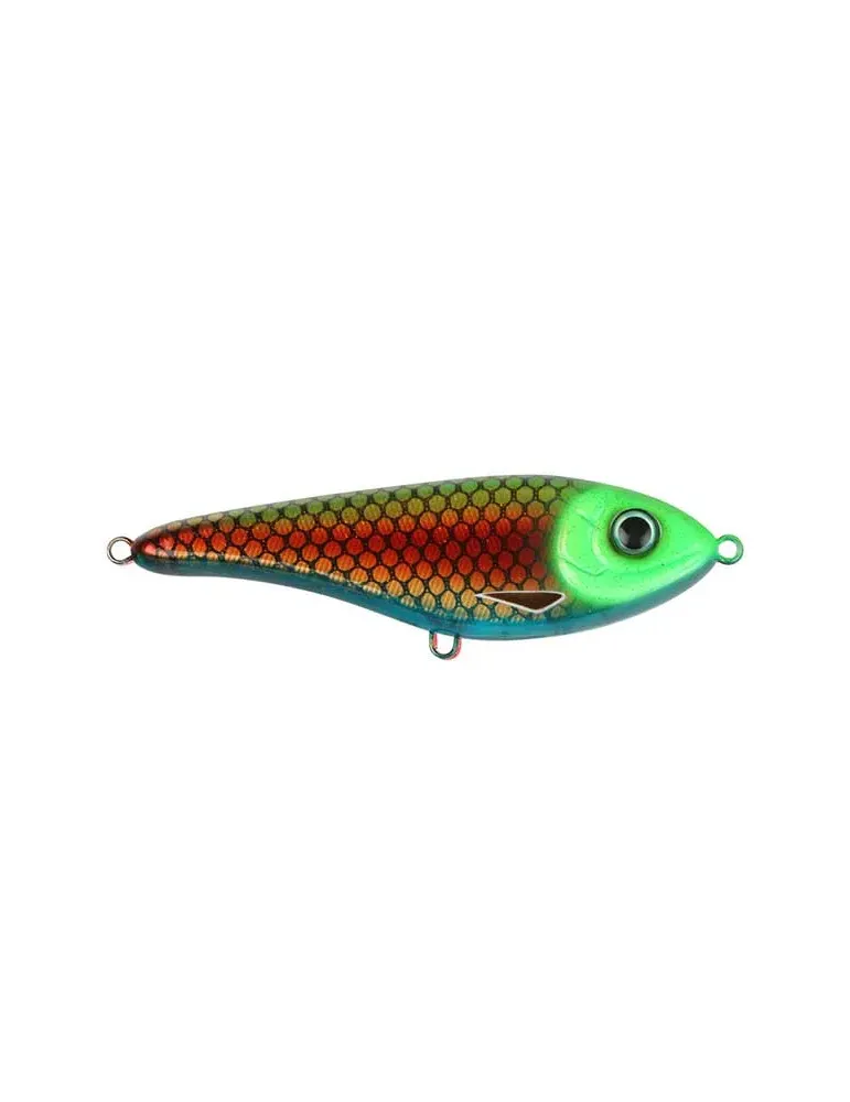 Buster Jerk Shallow Runner är flytande och jerkas i normaltempo ned till cirka 1 meter med en förföriskt slängande gång och en grym belly flash. Du kan även jerka den med höjd spötopp och få den att gå precis under ytan.