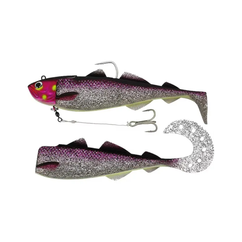 Crazy Daisy har på kort tid etablerat sig som en av marknadens absolut bästa havsfiskejiggar för hälleflundra och stor torsk. Betet är baserat på en liten gråsej – favoritbytet för merparten av havets tungviktare – och simmar som en dröm även vid långsamt fiske. I förpackningen inkluderas två olika kroppar: en med curltail för en lugn, slingrande simrörelse även i låg fart och en med paddeltail som jobbar hårt och sänder ut massor av lockande vibrationer i djupet. Vi har lagt år av tester och justeringar på att få fram ett perfekt bete och har provat alla tänkbara alternativ vad gäller form, storlek och viktfördelning. Slutresultatet talar för sig själv med en lista av landade tungviktare som numera är oöverskådlig. Crazy Daisy regerar i de kalla haven i norr!