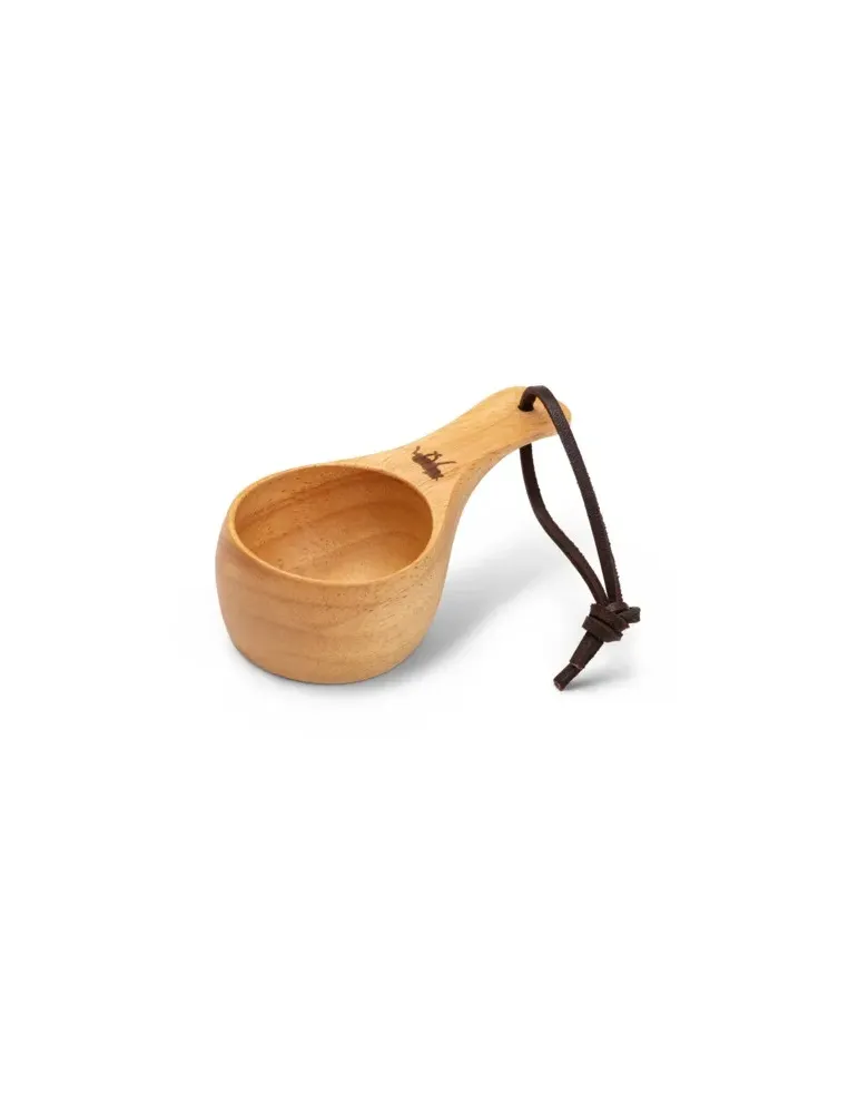 Träkåsa med älgmotiv av mellanstorlek (15 cl) med lädersnodd. En ny favorit i vår familj av träkåsor. Praktiskt och stilsäkert tillbehör på varje friluftsutflykt som kommer att skänka glädje till sin ägare under många år.