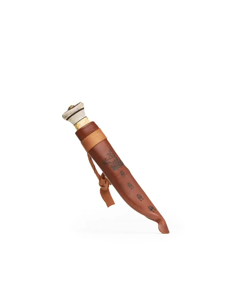 Blad 6,2 cm. kolstålsblad. Knivslida med ripmotiv.