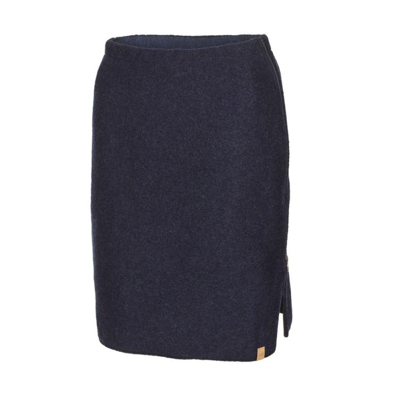 En knälång kjol i filtad ull. Blixtlåset som löper längs hela vänster sida gör plagget enkelt att ta på och av. Använd tillsammans med strumpbyxa eller varför inte som värmekjol över byxorna när kylan kommer. Ny färg för denna säsong är "Red cabage" och "Zen blue".