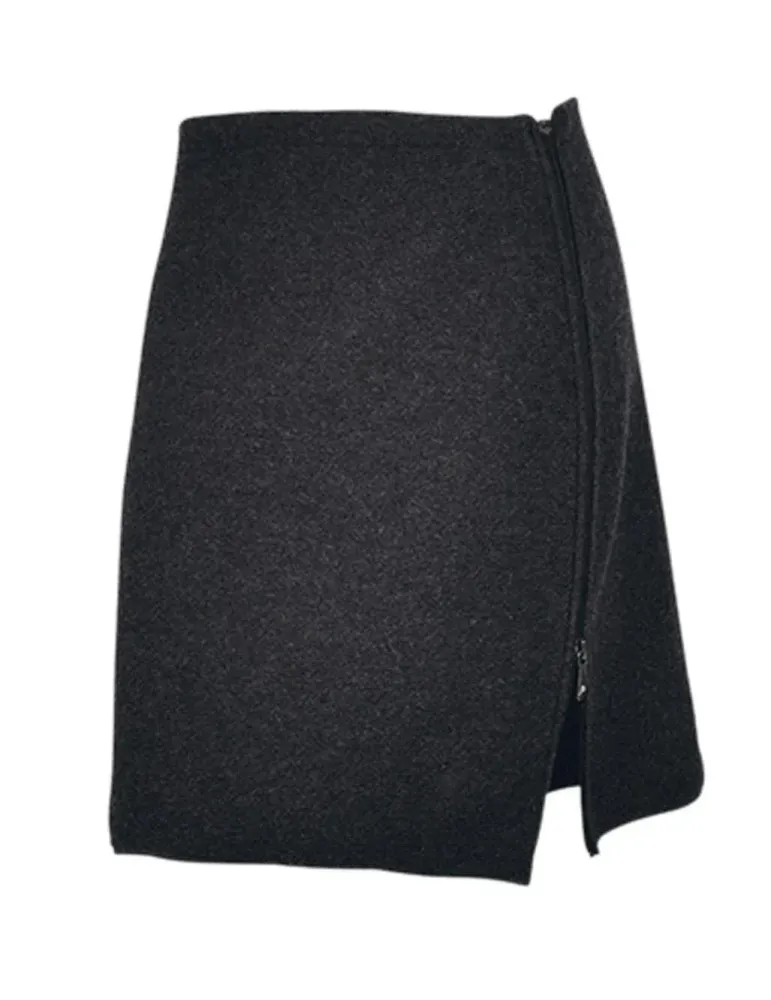 En knälång kjol i filtad ull. Blixtlåset som löper längs hela vänster sida gör plagget enkelt att ta på och av. Använd tillsammans med strumpbyxa eller varför inte som värmekjol över byxorna när kylan kommer. Ny färg för denna säsong är "Red cabage" och "Zen blue".