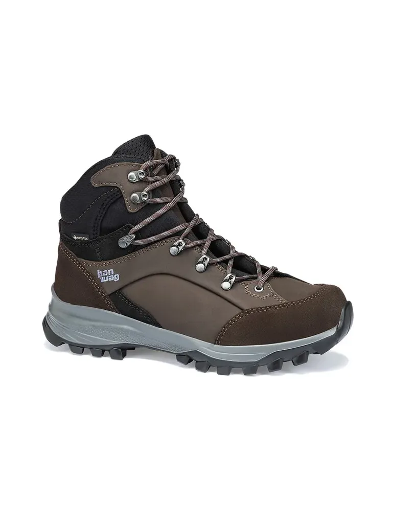 Hanwag Alta Bunions läst ger utrymme för stortån och den knöl som kan bildas vid stortåleden. Vid fotens insida är det helt sömfritt och lite extra mjukt för att effektivt minska på trycket vid det onda området. Ovandelen är tillverkad i en kraftig men smidig nubuck och är extra mjuk vid skaftavslutet. Invändigt är Alta Bunion fodrad med kromfritt, mjukt läder - något som inte bara är skönt mot foten utan också i någon mån skavsårshämmande. Kängan har ett fin flex i steget och lagom stabilitet för vandringar och promenader i lättare terräng. Extra dämpning i hälpartiet gör den bekväm även under vandringar på hårdare underlag. Yttersulan, Vibram® Endurance, ger bra grepp på mjukare underlag, har fint flex och hela sulan fungerar stötdämpande.