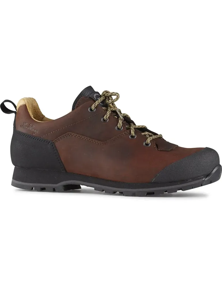 En låg vandringskänga med helfoder i läder, utrustad med en approach-yttersula från Vibram för bästa grepp.