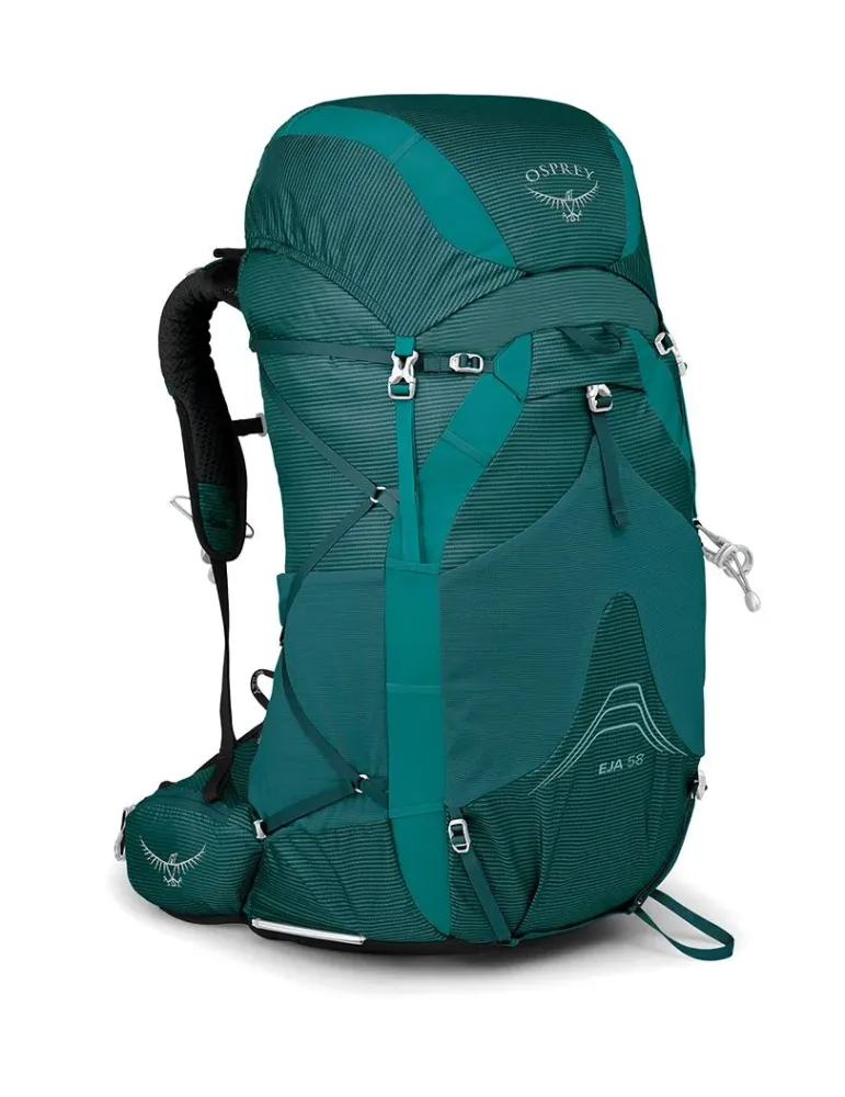 Eja är den perfekta damryggsäcken när varje gram räknas men du ändå behöver en pålitlig och stabil ryggsäck. Eja 58 är en ryggsäck tillverkad i 100 procent återvunnet material som är perfekt för de mer krävande turerna där det är långt mellan provianteringarna. Mycket erfarna vandrare kommer att uppskatta den branschledande komforten och ventilationen – utan den extra vikt detta ofta medför – vilket gör det till den perfekta ryggsäcken för krävande thru-hike och lättviktsvandring. Jagar du lägsta möjliga vikt? Ta av det flytande locket och använd det integrerade FlapJacket istället. Med vår förfinade AirSpeed-upphängning kan luften dessutom cirkulera mellan dig och ryggsäcken så att varje ny kilometer känns lika sval och bekväm som den föregående.