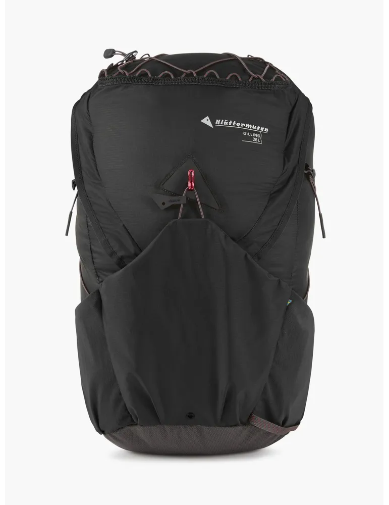 Denna 26 liters ryggsäck har en stor U-formad öppning för fullständig översikt och åtkomst. Bärsystemet ger dig flexibilitet och bra ventilation genom en mjuk skumrygg täckt av ett tunt nät, vilket gör att luften kan flöda mellan ryggsäcken och kroppen. För maximal komfort är höftbältet designat med breda fästpunkter för att dra ryggsäcken nära intill kroppen för att riktigt omsluta höfterna. Gilling har funktionella lösningar såsom en expanderbar frontficka för blöta kläder eller andra föremål som du vill separera från resten av packningen, och stretchiga sidofickor för vattenflaska eller andra längre föremål. En slinga av vävband på utsidan för enkel anpassning, två elastiska sidofickor för olika förvaring och några små toppfickor för solglasögon eller karta.