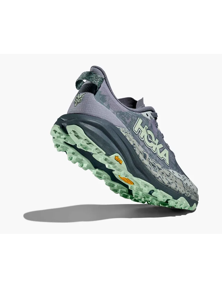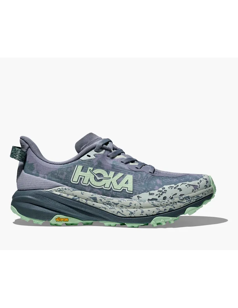 Hoka Speedgoat 6 erbjuder en greppvänlig, lyhörd åktur för teknisk terräng, vilket gör den till den ultimata stigerövraren. Genom att kombinera HOKAs berömda dämpning med aggressiv dragkraft och ultralätta material, är Speedgoat 6 designad för att dominera leden. Den här arbetshästen för teknisk terräng har en ovandel i vävd textil som andas, ett fotnära inre chassi och en plyschig plös med dubbla kil, vilket säkerställer komfort och stabilitet. Den reviderade fläckorienteringen, inspirerad av hoven på en get, ger exceptionellt grepp på utmanande ytor.