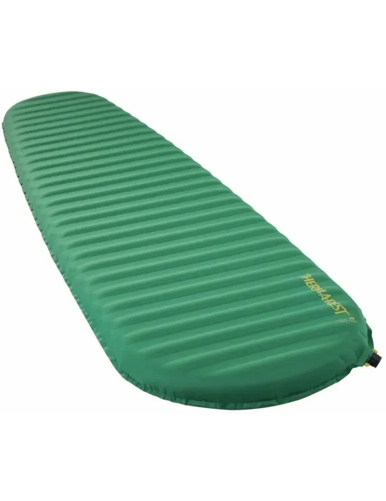 Trail Pro är en uppgraderad version av Therm-a-Rests klassiska självuppblåsande liggunderlag. Med en tjocklek på hela 7,6 cm erbjuder den exceptionell komfort för campingäventyr året runt. Ovansidan är tillverkad av ett tyst stretchmaterial som gör det behagligt att sova direkt mot underlaget när du använder sovsäcken som täcke.