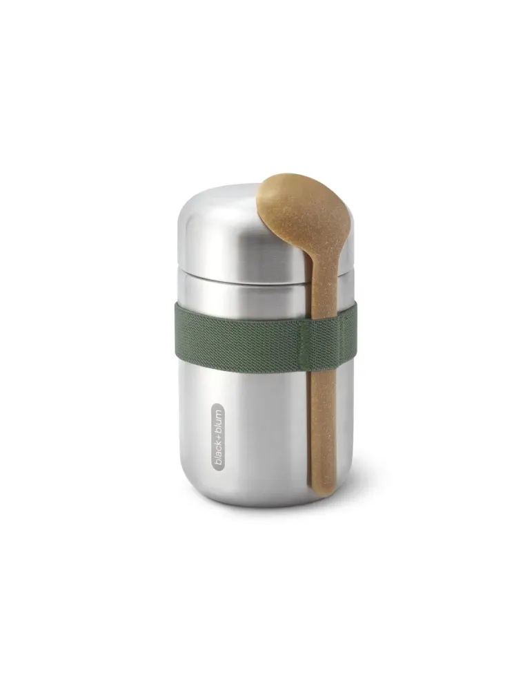 Black+Blums behändiga mattermos rymmer 400 ml / 4 dl, perfekt för en person. Praktisk stretchband håller den miljövänliga, träfiberblandade skeden på plats vid transport. Håller mat varm upp till 6 timmar och kall upp till 8 timmar. Läcksäkert lock med silikontätning så att endast det rostfria stålet kommer i kontakt med innehållet.