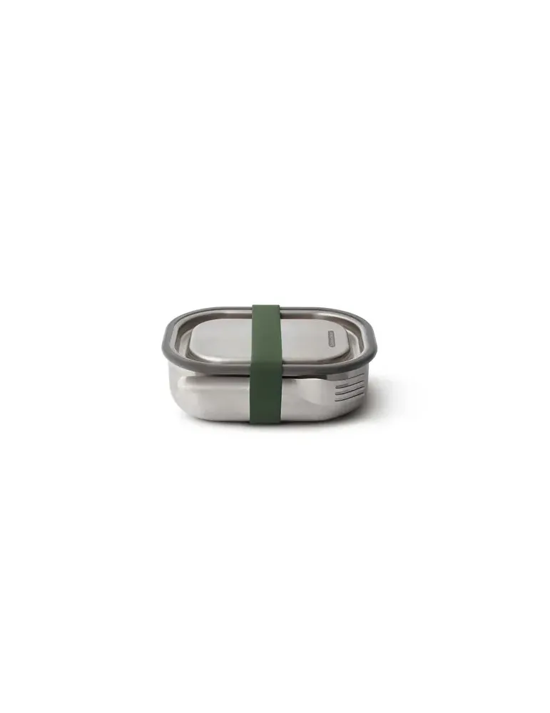 Black+Blums populära lunchbox, eller matlåda om man så vill, i rostfritt stål. Den här modellen rymmer 600 ml. Praktiskt gummiband med hållare för medföljande metallbestick. Gummikantat lock med ventil för en tätförslutande låda.