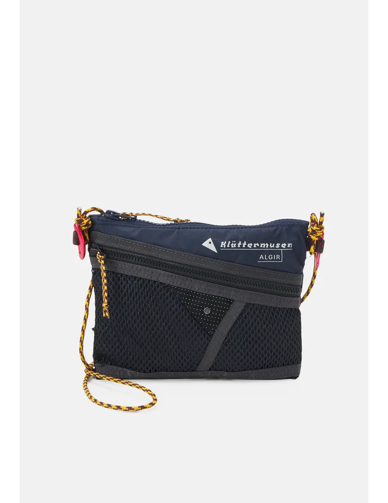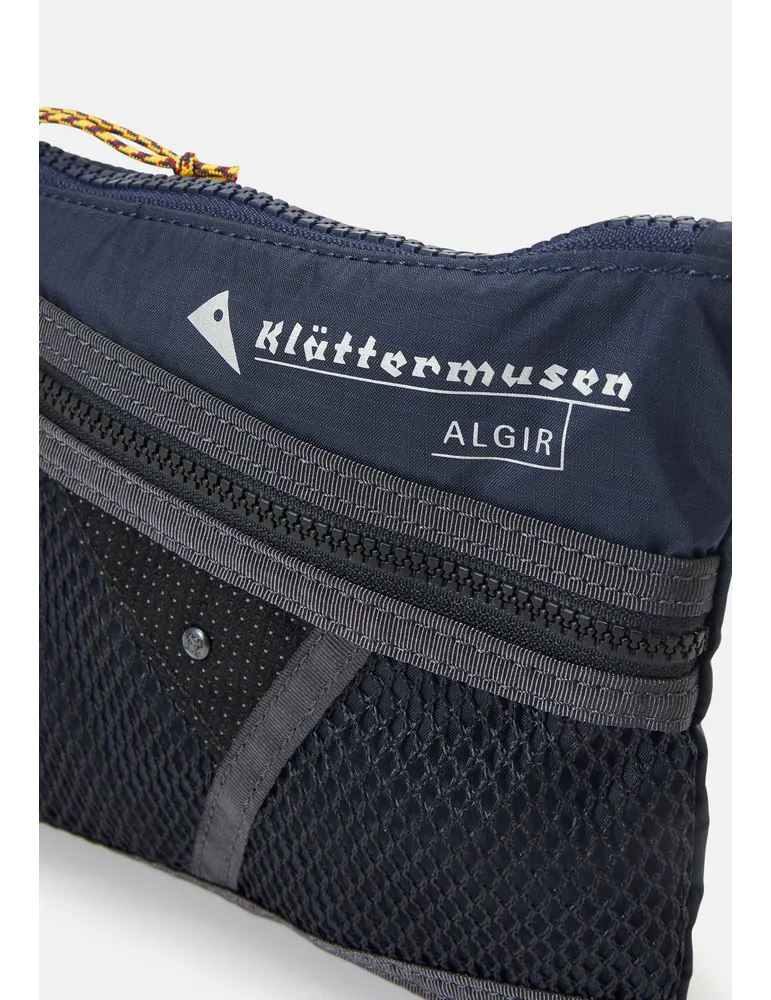 En liten och hållbar tillbehörsväska som kan användas för att organisera små tillbehör, alternativt som en tillhörande väska till en större ryggsäck, fastknäppt med hjälp av knapparna. Algir har en ficka på utsidan och ett justerbart band som kan användas för att hänga väskan över ena axeln alternativt runt halsen.