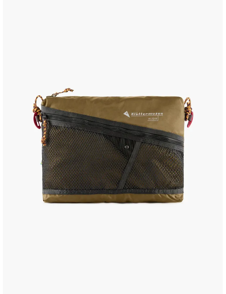 En liten och hållbar tillbehörsväska som kan användas för att organisera små tillbehör, alternativt som en tillhörande väska till en större ryggsäck, fastknäppt med hjälp av knapparna. Algir har en ficka på utsidan och ett justerbart band som kan användas för att hänga väskan över ena axeln alternativt runt halsen.