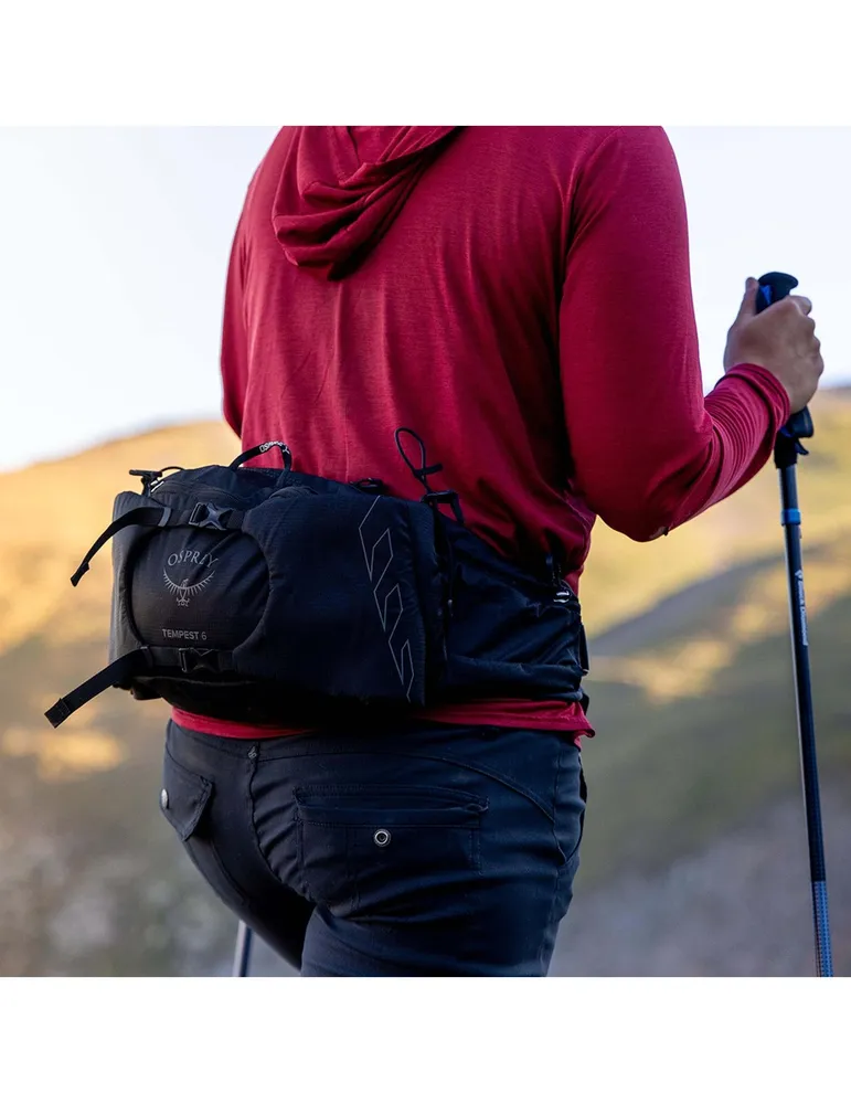 Damspecifika Tempest 6 är en perfekt lösning för minimalistiska vandrare som vill bära med sig det nödvändigaste utan att det blir klumpigt. Den rymmer ett par vattenflaskor, en extra tröja och ett litet mellanmål. Försedd med ett kroppsnära BioStretch-höftbälte som håller packningen stabil, vare sig du dagsvandrar eller sysslar med trail running. Tillverkas av högkvalitativt, mycket tåligt och bluesign®-certifierat återvunnet nylon med fluorkarbonfri, vattenavvisande DWR-impregnering.