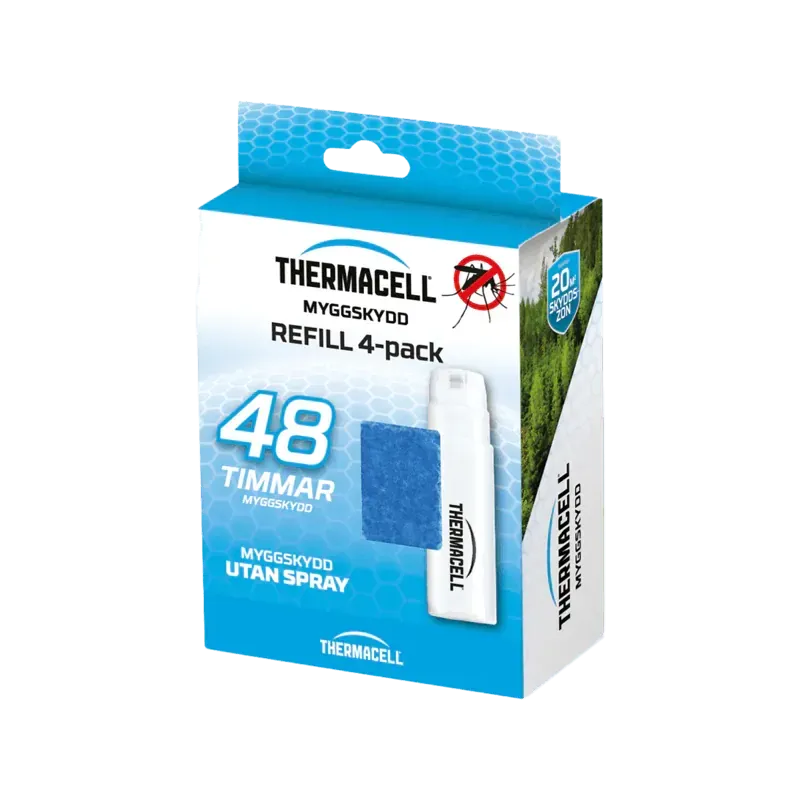 Refill 4-pack till Thermacell myggskydd med upp till 48 timmars skydd.