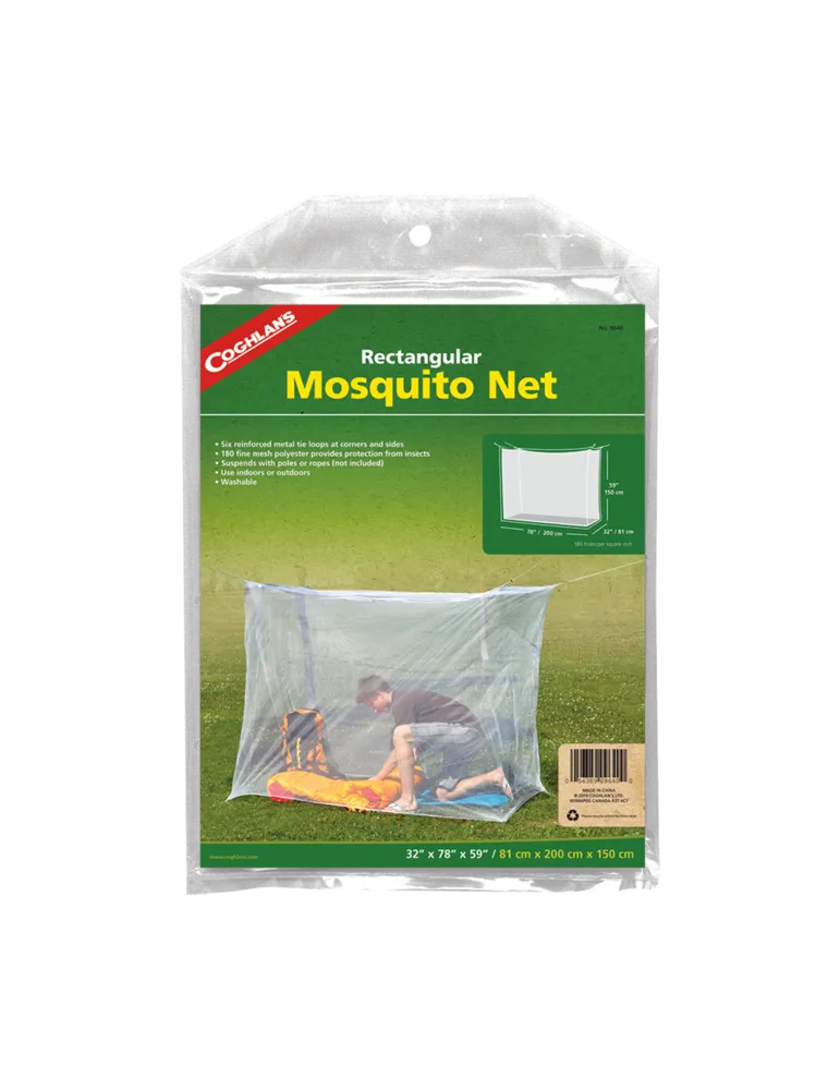 Mosquito Net Single är ett rektangulärt myggnät från Coghlan's som passar över en sovsäck eller tältsäng. 180 polyester mesh ser till att hålla alla småkryp borta. Kan hängas upp mellan några träd, eller fästas vid insidan av ett tält.