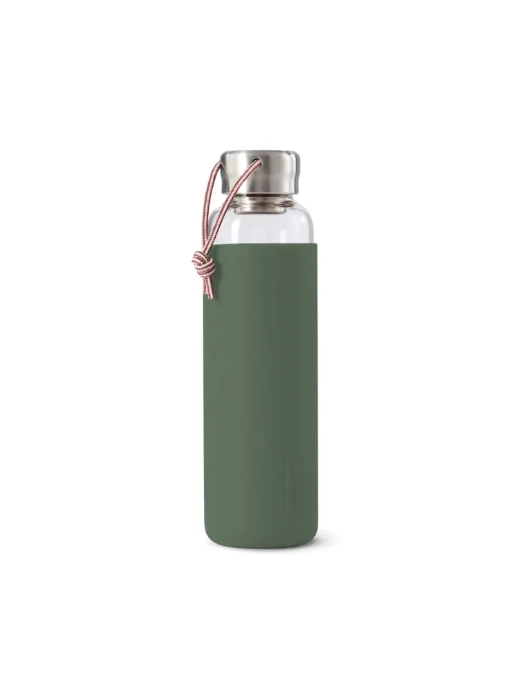 Glas och högkvalitativt, livsmedelsgodkänt rostfritt stål. Grått överdrag av silikon samt silikontätning till skruvlocket, som endast tillåter stål att komma i kontakt med innehållet.
