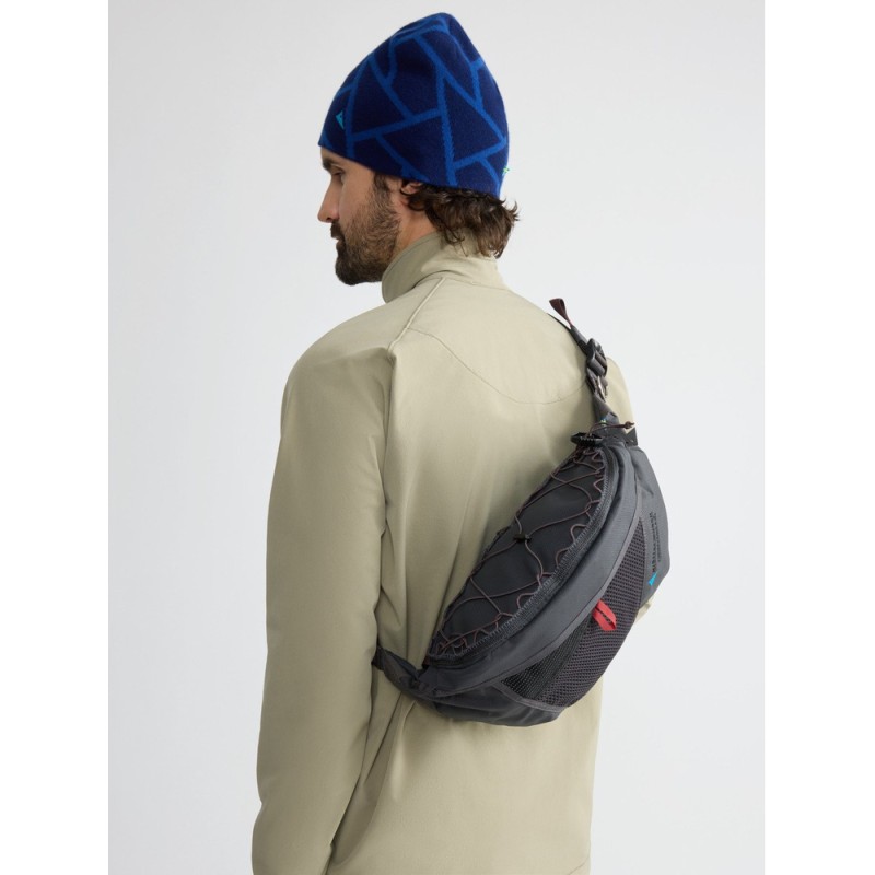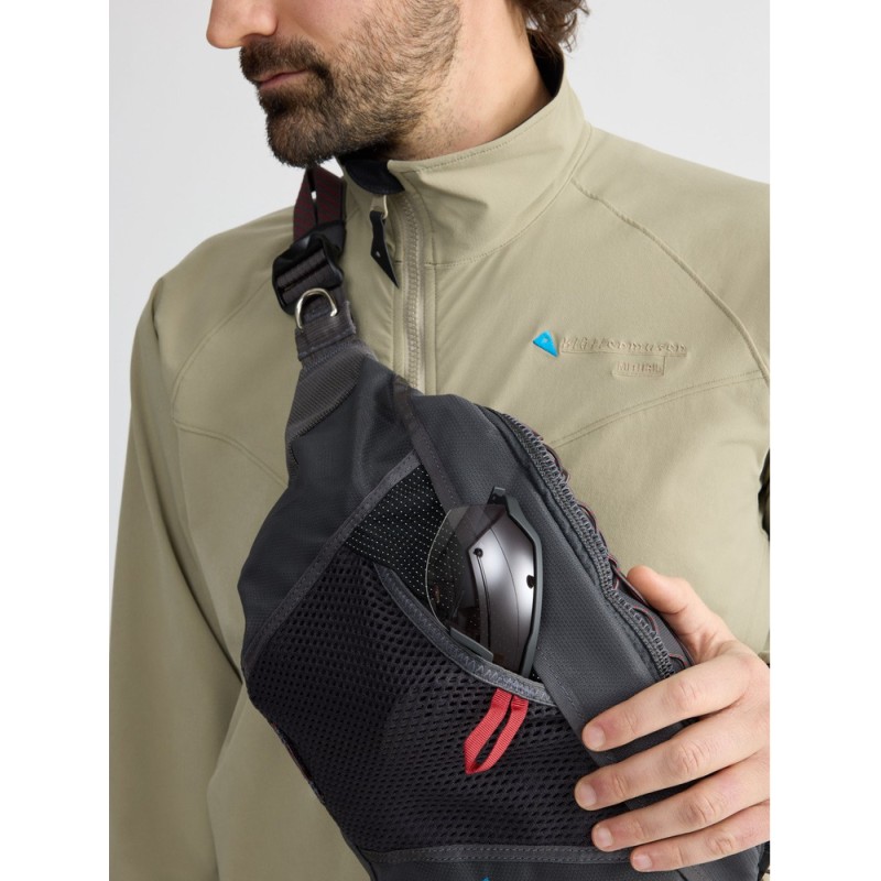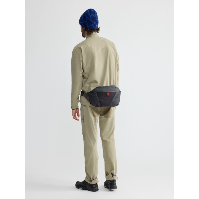 Fimmafäng 4.0 är en mångsidig höftväska för varje entusiastisk äventyrare. Den kan bäras över axeln, fästas i en karbinhake eller bäras runt midjan på traditionellt vis. Den kan till och med fungera som en extraficka om man fäster den på en ryggsäck. Oavsett om du vandrar, cyklar eller gör något i ett lugnare tempo så är Fimmafäng 4.0 en idealisk och pålitlig följeslagare. Tyget innehåller 60% återvunnen polyamid och är fritt från fluorkarboner.