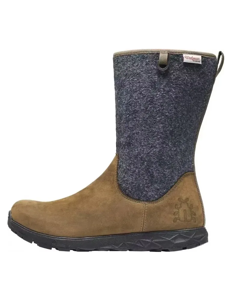 Skaftet på överdelen är tillverkat i filtad ull gjort av restprodukter från svenska Woolpowers klädproduktion. Lädret är av hög kvalitet och insidan fodrad med fleece för en riktigt varm och gosig känsla.