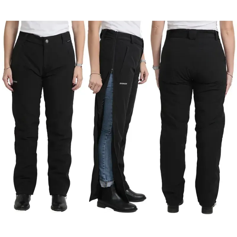 Women's Narvik Pantsfrån Dobsom är ett par vadderade friluftsbyxor för dam med 4-vägsstretch och långa delbara blixtlås längs sidorna. Byxan har ett mjukt, följsamt och vindtätt yttertyg, samt tyst när du går i den. Den fylliga polyestervadden ger en skön värme.