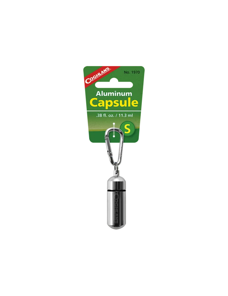 Coghlan's Aluminium Capsule är en praktisk och pålitlig förvaringstub för små föremål som du vill skydda när du är på språng. Den kompakta, vattentäta kapseln i slitstark aluminium håller innehållet torrt och säkert, oavsett om du vandrar, campar eller reser. Den medföljande karbinhaken gör det enkelt att fästa kapseln på ryggsäcken eller i bältet - en smart och mångsidig följeslagare för alla äventyrare.