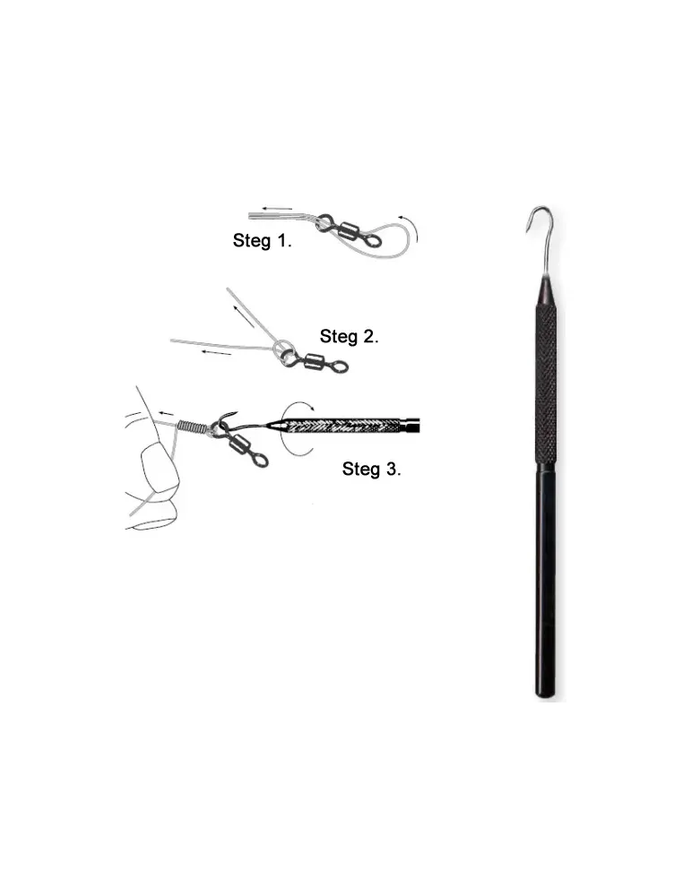 1. Vik Wiren till en ögla och fäst den i kroken/lekandet.