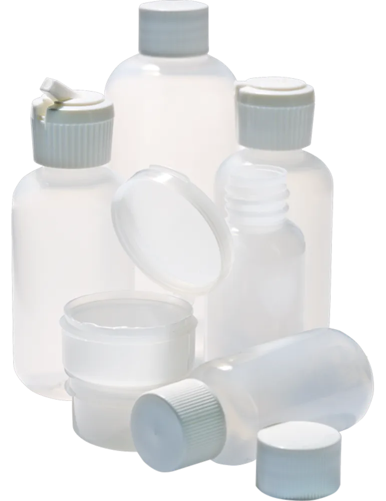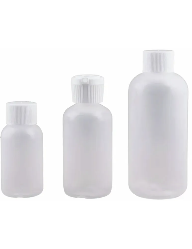 Lätt och praktiskt set med fem BPA-fria små flaskor och två burkar, som tillsammans väger 100 gram.